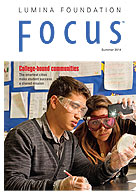 Lumina Foundation Focus magazine is an occasional publication that highlights higher education issues in a human-interest, magazine-style format. Our goal is to show how access and success issues affect real students—and the people who serve them—on campuses across the nation. See all issues.