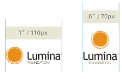 The Lumina logo was built to be presented in either a horizontal or vertical format. Choice of format will be determined by the available space in which it will be placed. Care must be taken to size the logo so that the word “Foundation” remains legible.