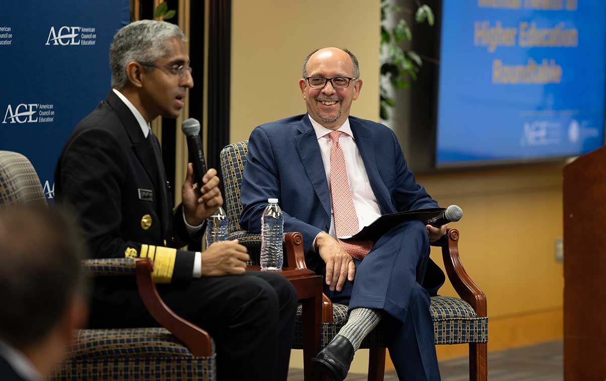 “There’s a crack in the door,” Murthy said recently at the American Council on Education (ACE) Mental Health in Higher Education Roundtable. “We need to really blow that door open in terms of enabling the kind of conversations to happen about mental health that happen all the time about physical health. We have to find ways to model what it’s like to talk about our mental health, to help people understand that mental health is health. It’s part of our health—no less important than our physical health.”