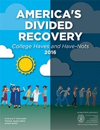 Today’s economy continues to leave Americans without a college education behind, according to a report from the Georgetown University Center on Education and the Workforce. Out of the 11.6 million jobs created in the post-recession economy, 11.5 million went to workers with at least some college education; of those jobs, 8.4 million required workers with a bachelor’s degree or higher, the report says.