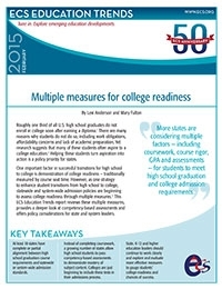 Making a successful transition from high school to college needs to be a policy priority for states, contends this report from the Education Commission of the States. The study examines multiple measures to assess college readiness, provides an in-depth review of competency-based assessments, and offers policy considerations for state and system leaders.