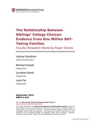Older brothers and sisters typically yield influence over their younger siblings – and that includes where they attend college, reports this working paper from Harvard University and the College Board. The study, which analyzed 1.6 million pairs of siblings who took the SAT between 2004 and 2011, found that younger siblings are approximately 15 percent more likely to enroll in four-year schools or highly competitive colleges if their older siblings have already done so.