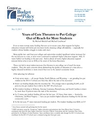 Dwindling state support for higher education is straining college affordability, according to a report from the Center on Budget and Policy Priorities. This is even more evident for students whose families struggle to make ends meet, the report’s findings show.