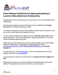 Press Release Guidelines for states participating in Lumina’s State Attainment Collaborative